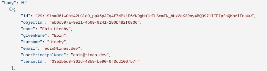}Then you can retrieve details for one of those teams. The data returned will include the “internal ID” which acts as The Microsoft Teams ID for that team.