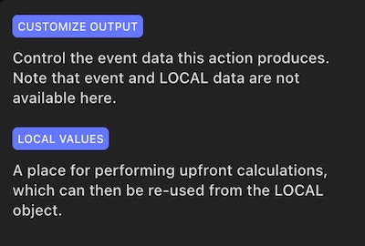 Nesting or combining functions within an action or leveraging local values can also cut down on total number of actions needed in a story. Local values are upfront calculations that can be referenced within the action using LOCAL. There's a trade-off between condensing the logic and the number of actions and the more readability and ability to understand a given story. We'll talk more about this in the next blog.