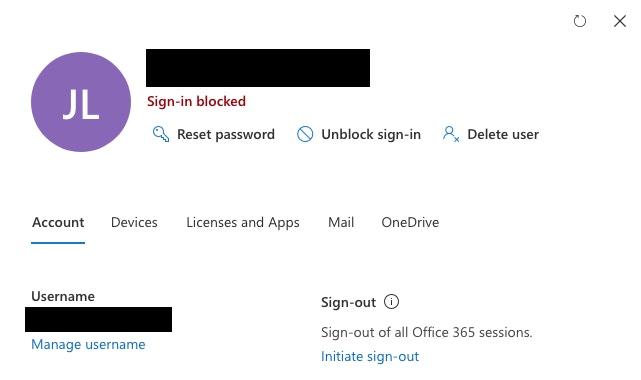 View from https://admin.microsoft.com/Adminportal/Home#/users account management