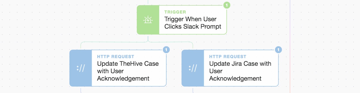 Here we can “wait and gate” in the workflow again. It waits until it sees the right number of events from the preceding workflows (i.e. 3 x events; TheHive update, a Jira update, and a Helpdesk Slack message) before continuing. We have now closed the loop on our detect, enrich / record, and respond / protect automation.