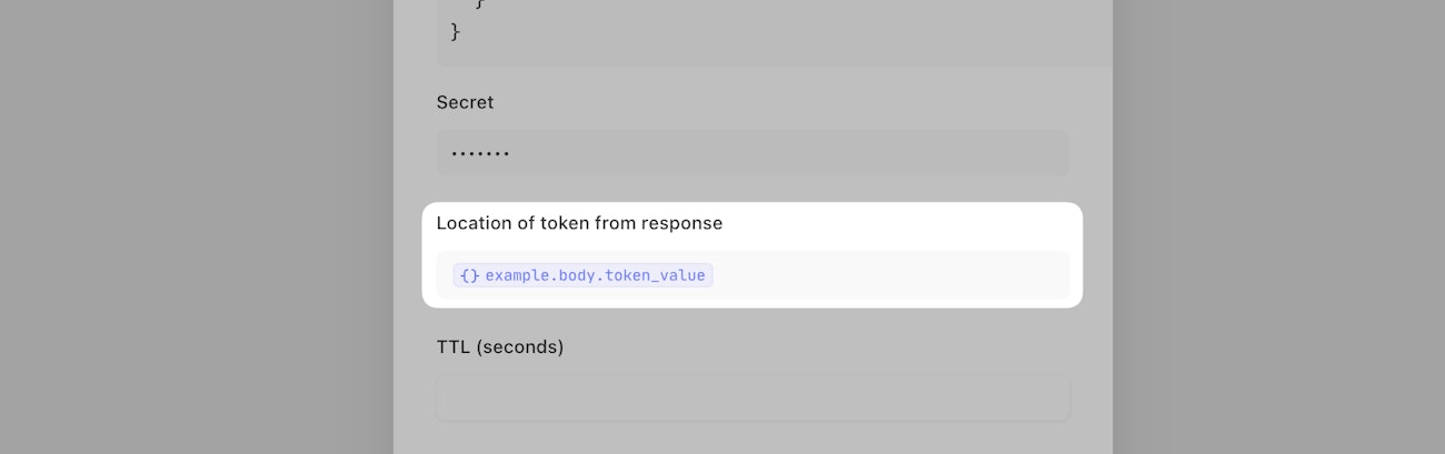 Additionally, you can input a secret value for use in the request. This is securely stored, and can be referred to in formulas within the request fields (params, headers, etc) as secret.