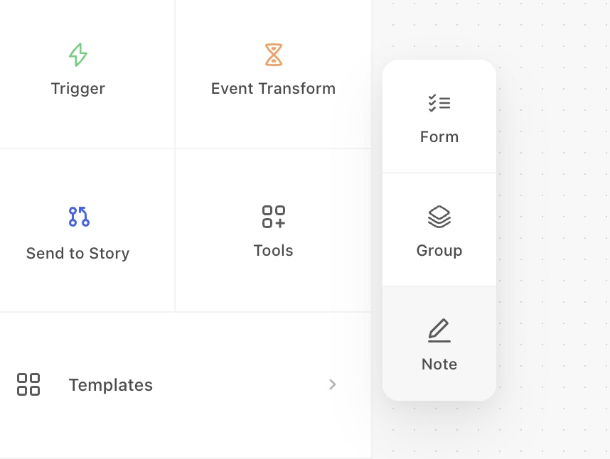 Notes can be added to a story by clicking the "Add Notes" option on the left side of the storyboard and dragging a new Note into the story. Notes can also be added by selecting the storyboard and using the keyboard shortcut n.
