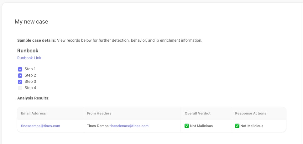 We support referencing the attributes of the case itself using the Tines Formula language, so you can access the case description using team_case.description