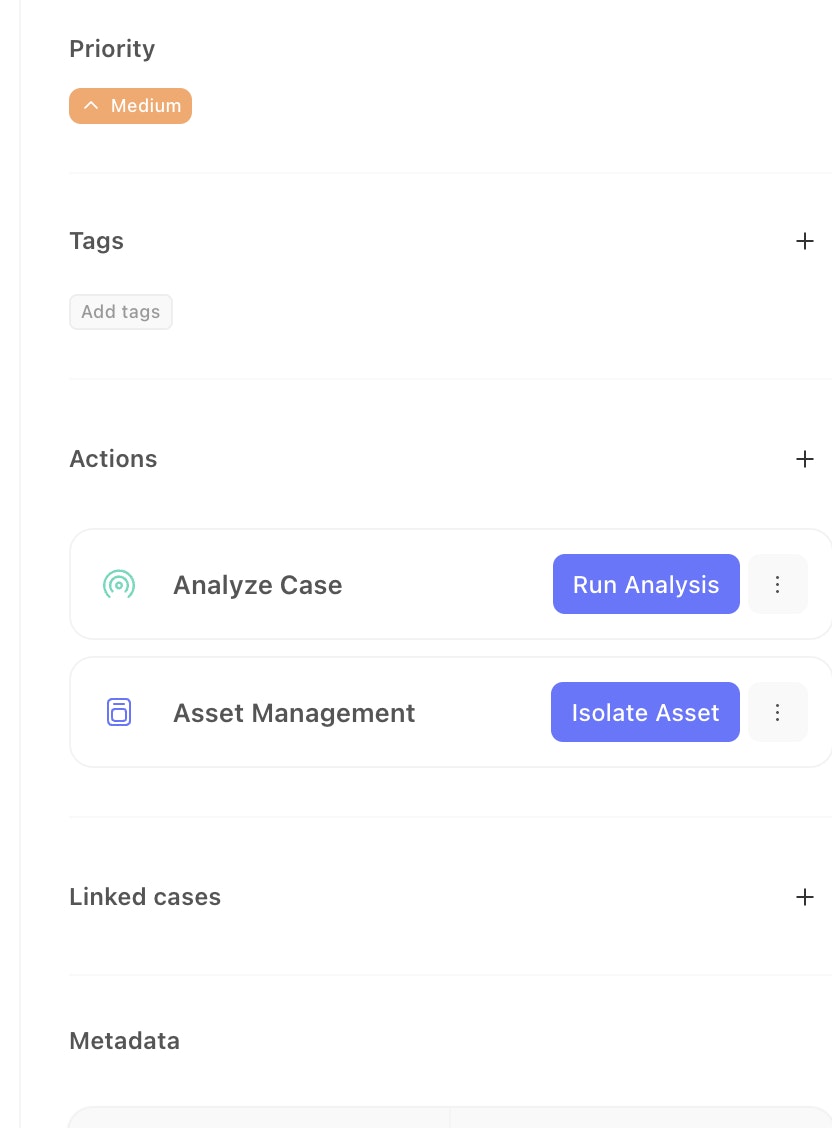 Case actions let you add interactive automation hooks into your case. These hooks appear in the form of buttons added to the case.