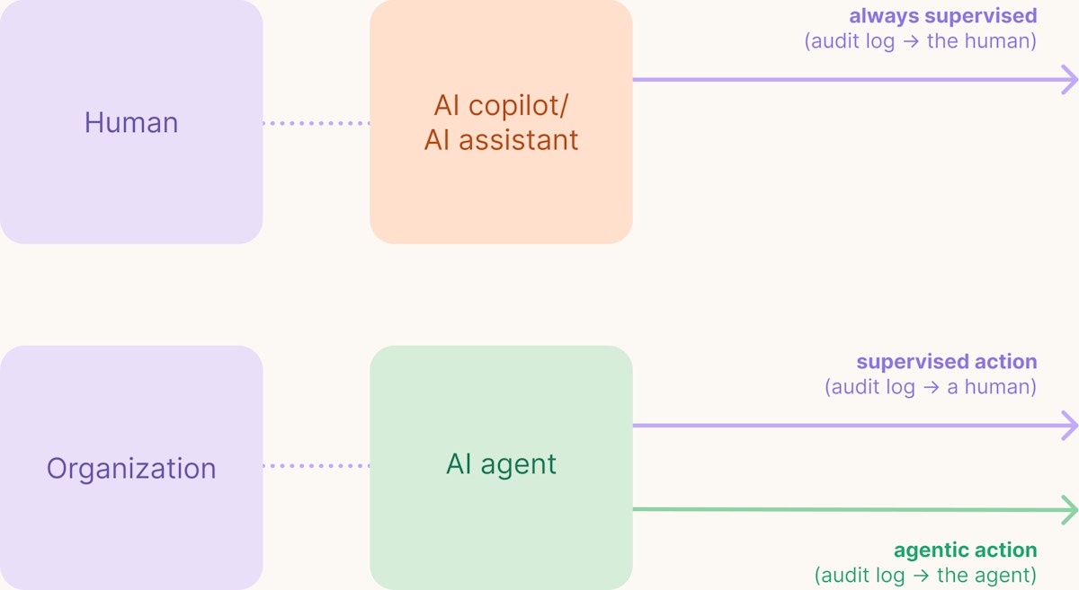 AI assistants are always supervised by a human. An AI agent can act independently on behalf of an organization. Audit logs are the litmus test.