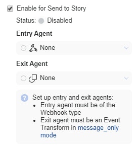 When a Send to Story Action sends an event to a sub-story, the entry Action will emit an event to its receiver actions. Entry Actions must be of type Webhook.