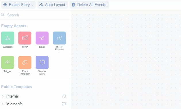 Sub-stories work the exact same as normal Tines Stories. The only difference is that a sub-story has an entry Action and an exit Action. The entry Action must be a webhook-type Action. The exit Action must be a message-only mode event transformation Action.