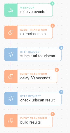 This Story is designed to submit URLs to urlscan for analysis. It will then wait for 30 seconds while urlscan processes the results, and, when complete, return the verdict.