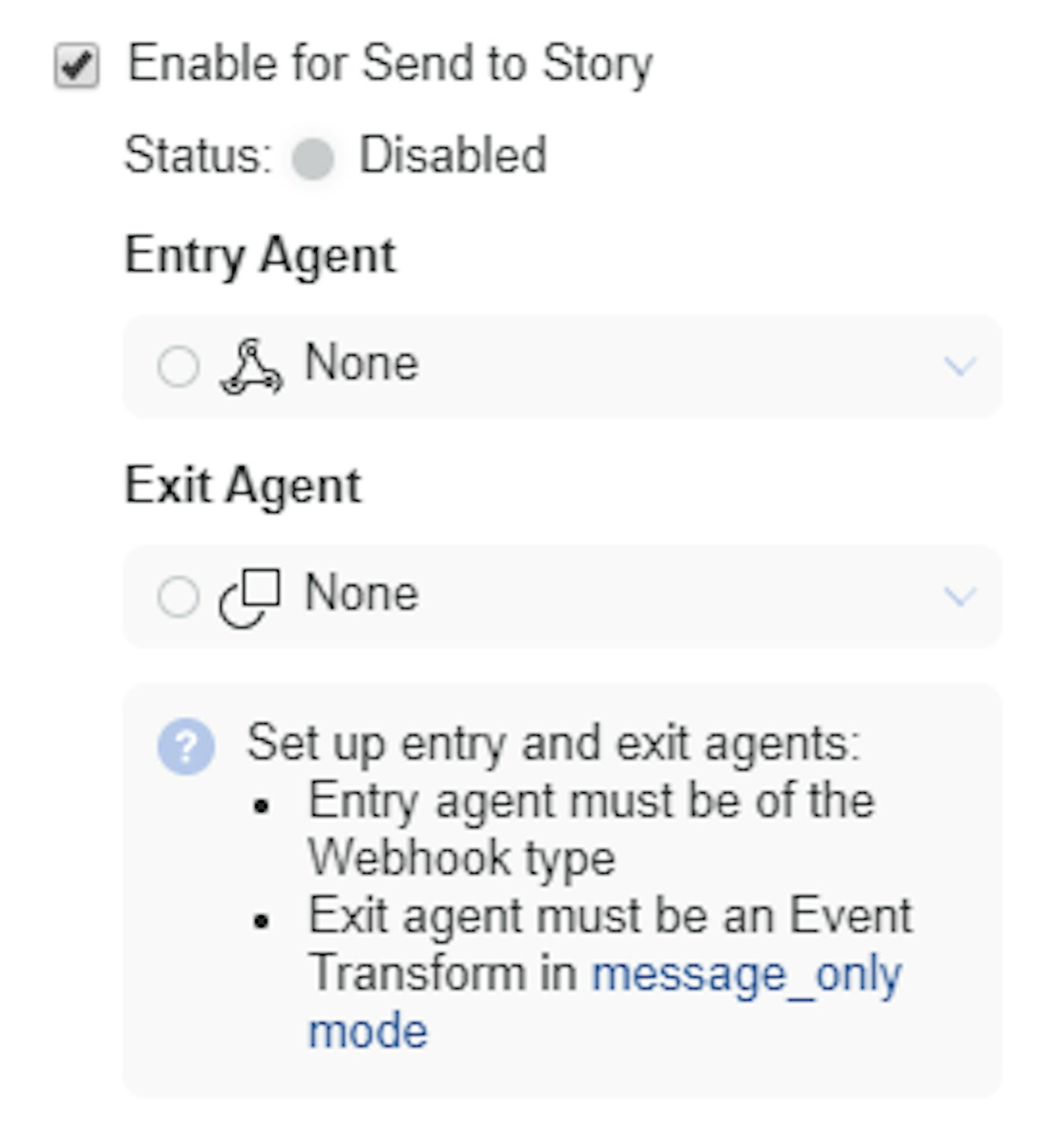 When a Send to Story Action sends an event to a sub-story, the entry Action will emit an event to its receiver actions. Entry Actions must be of type Webhook.