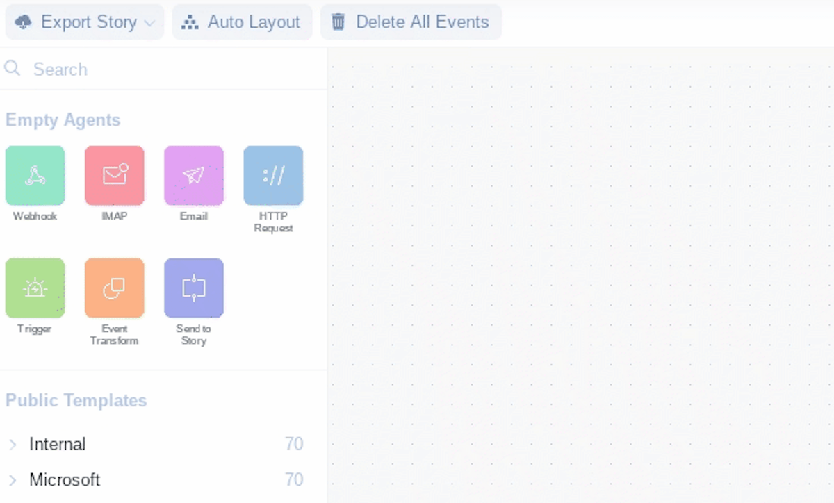 Sub-stories work the exact same as normal Tines Stories. The only difference is that a sub-story has an entry Action and an exit Action. The entry Action must be a webhook-type Action. The exit Action must be a message-only mode event transformation Action.