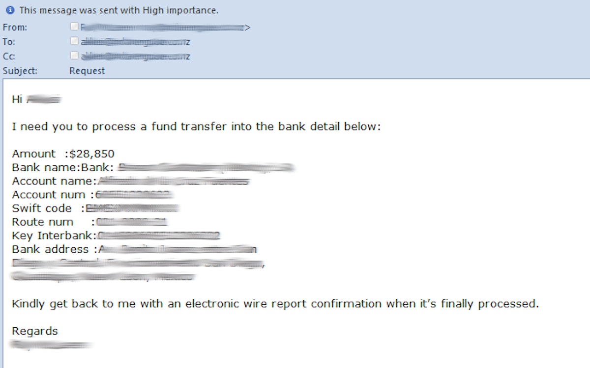 CEO Fraud Sample Email