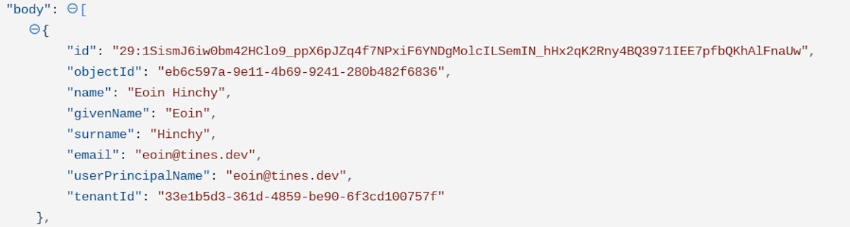 For the purpose of this blog, however, we’ll examine a worst-case scenario – one where you neither have a team in which all employees are members, nor do you want to use a lookup table to store this information. In this case, you can perform the following series of searches in Microsoft Graph to retrieve the user ID.