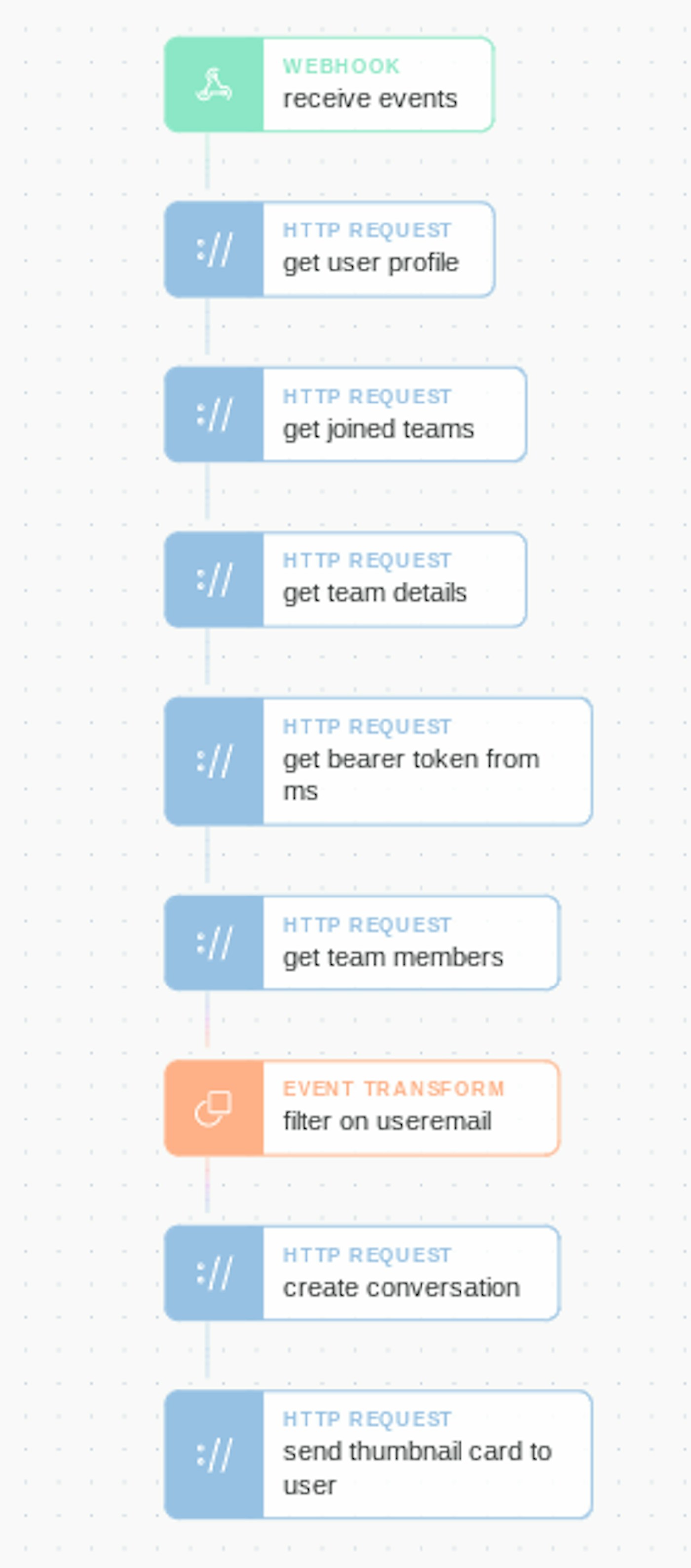 The Story will need to be customized for your environment. It can be edited to include just details from below the “get bearer token from ms” Action if the team ID is known, or from below the “create conversation with user” if the user ID is known.