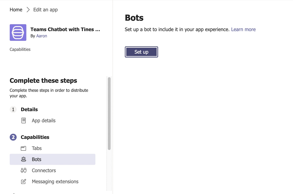5. Click the bots tab in the left-hand menu and click "Set up."