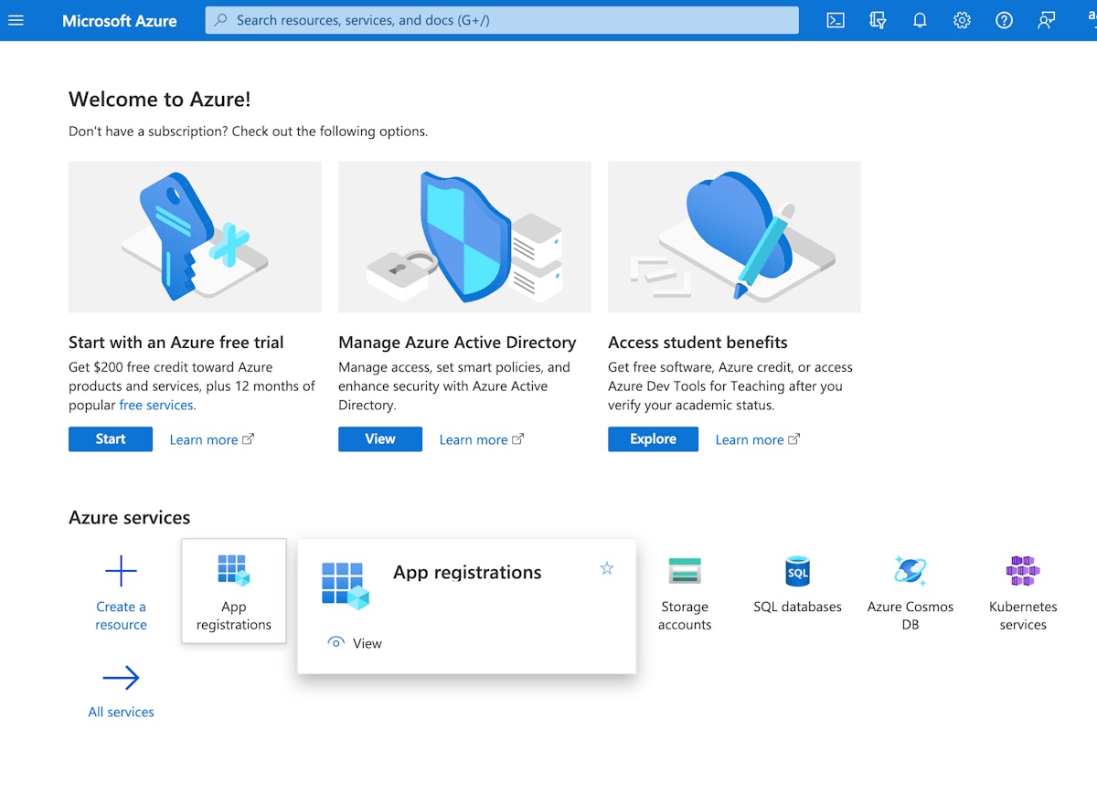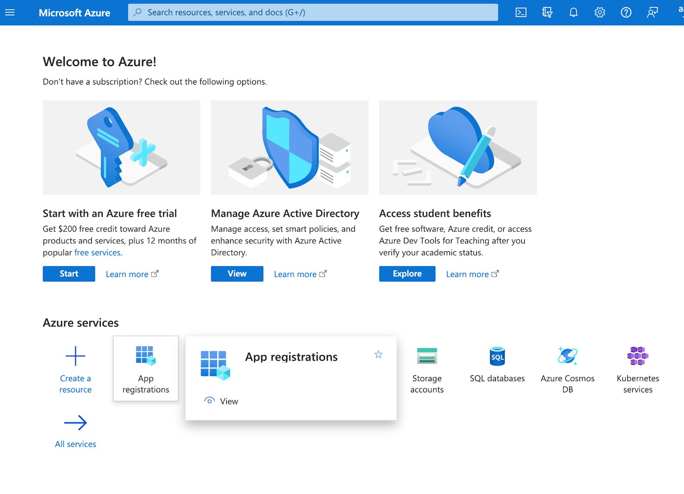 3. In a new browser tab, navigate to your Azure Portal, then click on "App registrations."
