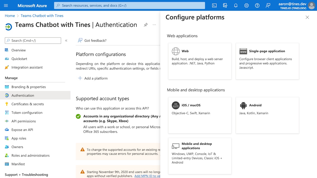 The chatbot needs a Microsoft application associated with it. This is ultimately what we will authenticate against.