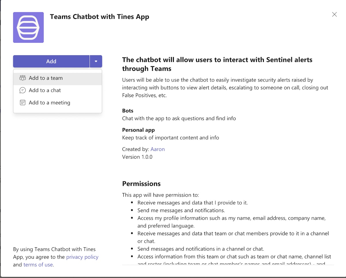 Since those blogs were written, the Tines platform has significantly evolved in many areas. One major enhancement was to our credentials vault. Previously, as suggested in Part 1, authenticating with Microsoft required leveraging HTTP Request Actions within a Tines Story to manually perform the client credentials flow and request a bearer token from Microsoft. Thanks to an update, the client credentials flow can now be handled directly within our credentials vault. This blog will walk through how to set up a chatbot within Microsoft Teams, authenticate the chatbot leveraging the client credentials flow natively from within Tines, and provide a security analyst the ability to respond to an alert via Microsoft Teams.