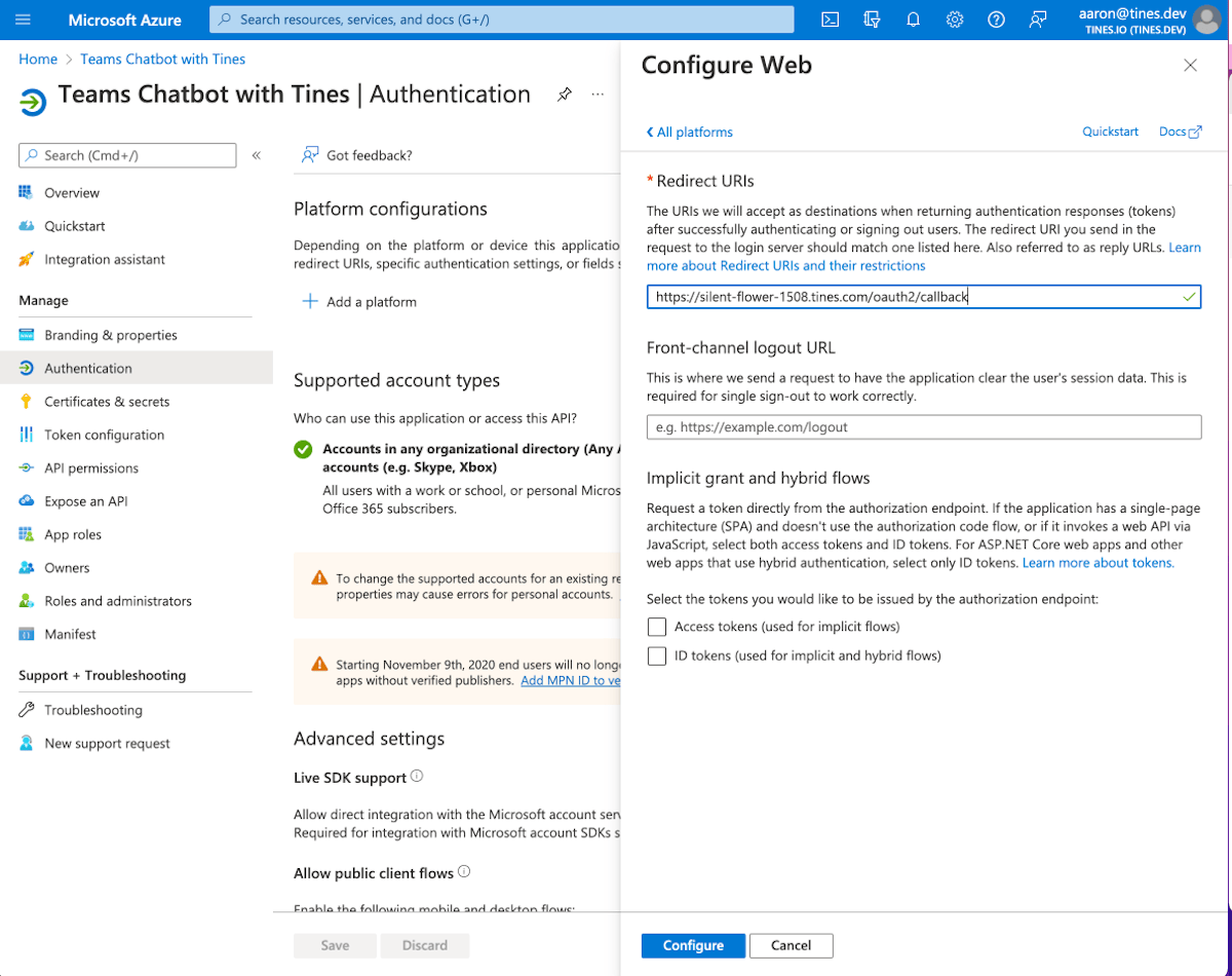 The chatbot needs a Microsoft application associated with it. This is ultimately what we will authenticate against.