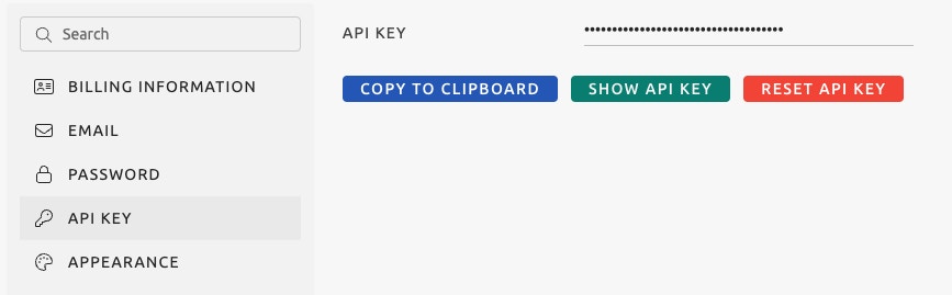 All HTTP Requests to OctoPerf require an API Key credential to be entered as an ‘Authorization’ header. This can be created from your OctoPerf account, under the profile menu option ‘API Key’.