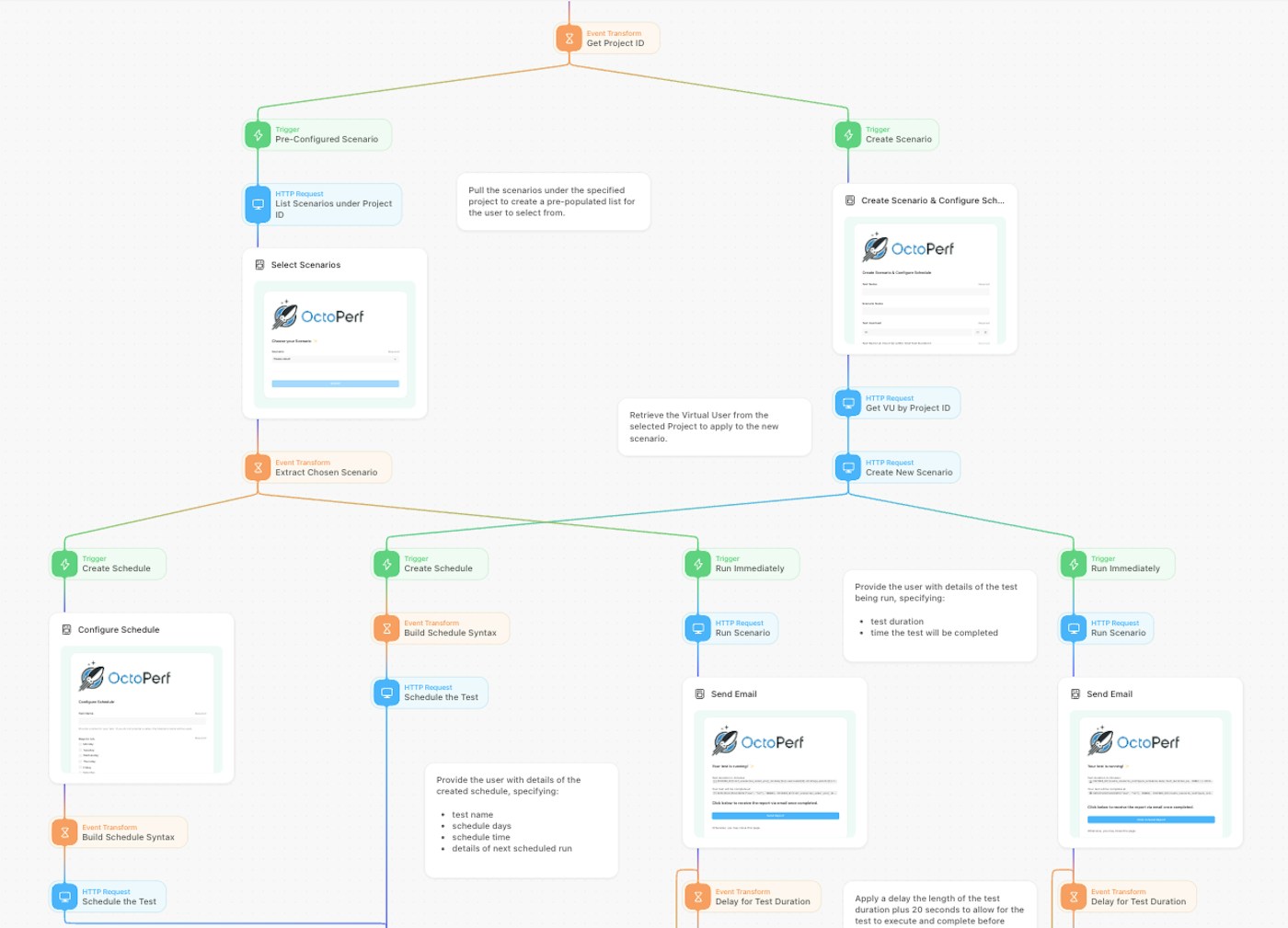 Tines’s versatility comes from its ability to integrate with any tool that offers an API. By combining Tines with the OctoPerf platform, Tines provides a streamlined way of automating the creation, scheduling, and execution of test scenarios and delivering the final analysis reports right to your inbox. In this blog, we will cover a story that does exactly that.