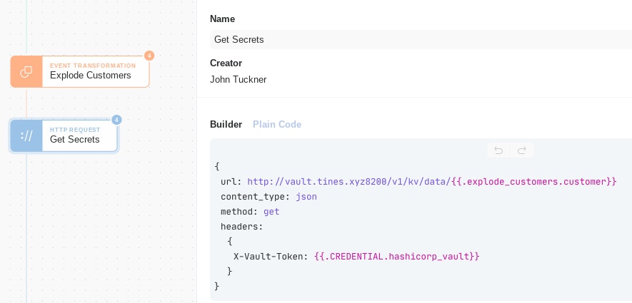 Privileged access management and password vaults are becoming increasingly more common as identity tokens become more prevalent. Managed service providers also need an outlet to manage a large number of credentials for their clients safely. Using the HRAC, Tines can enable many password vault solutions. Take a look at how one would access HashiCorp Vault in Tines: