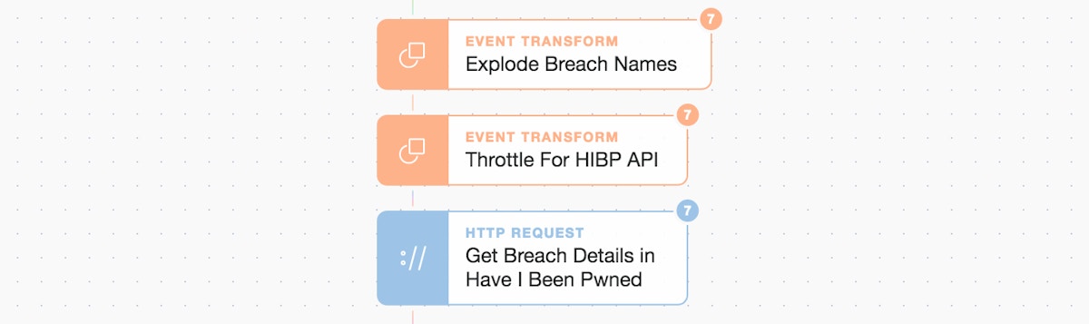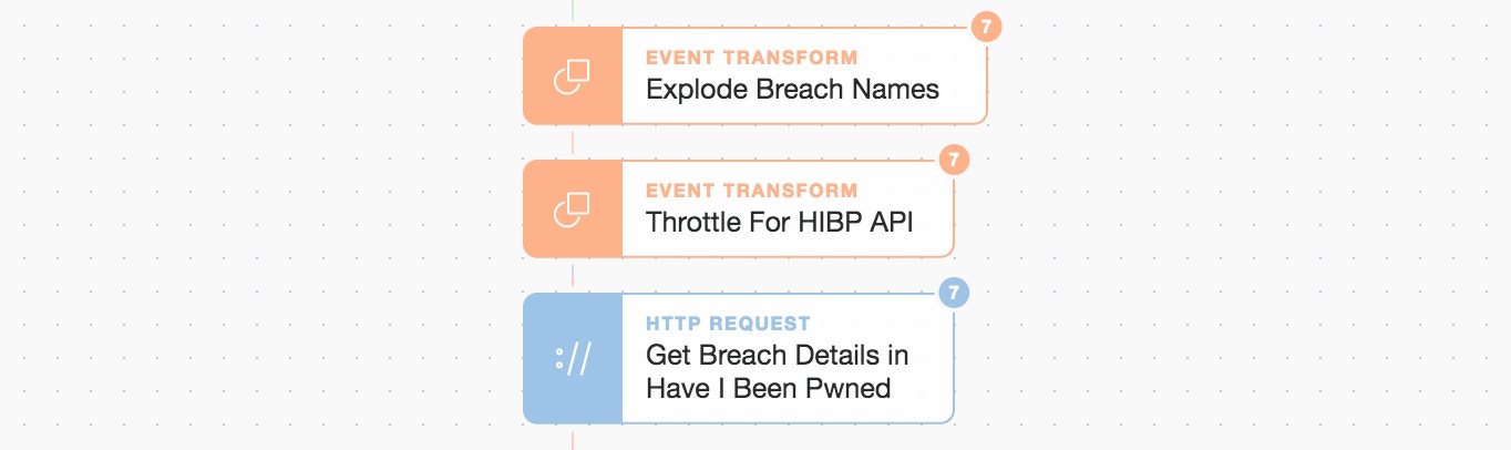 So we request more details on each of the breaches from HIBP by iterating through the list behind the scenes. This is done by exploding the list and then using the normal HTTP Request Action.