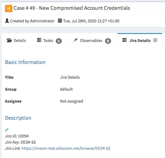 (Automatic addition of Jira Details in TheHive as a task for tracking purposes )