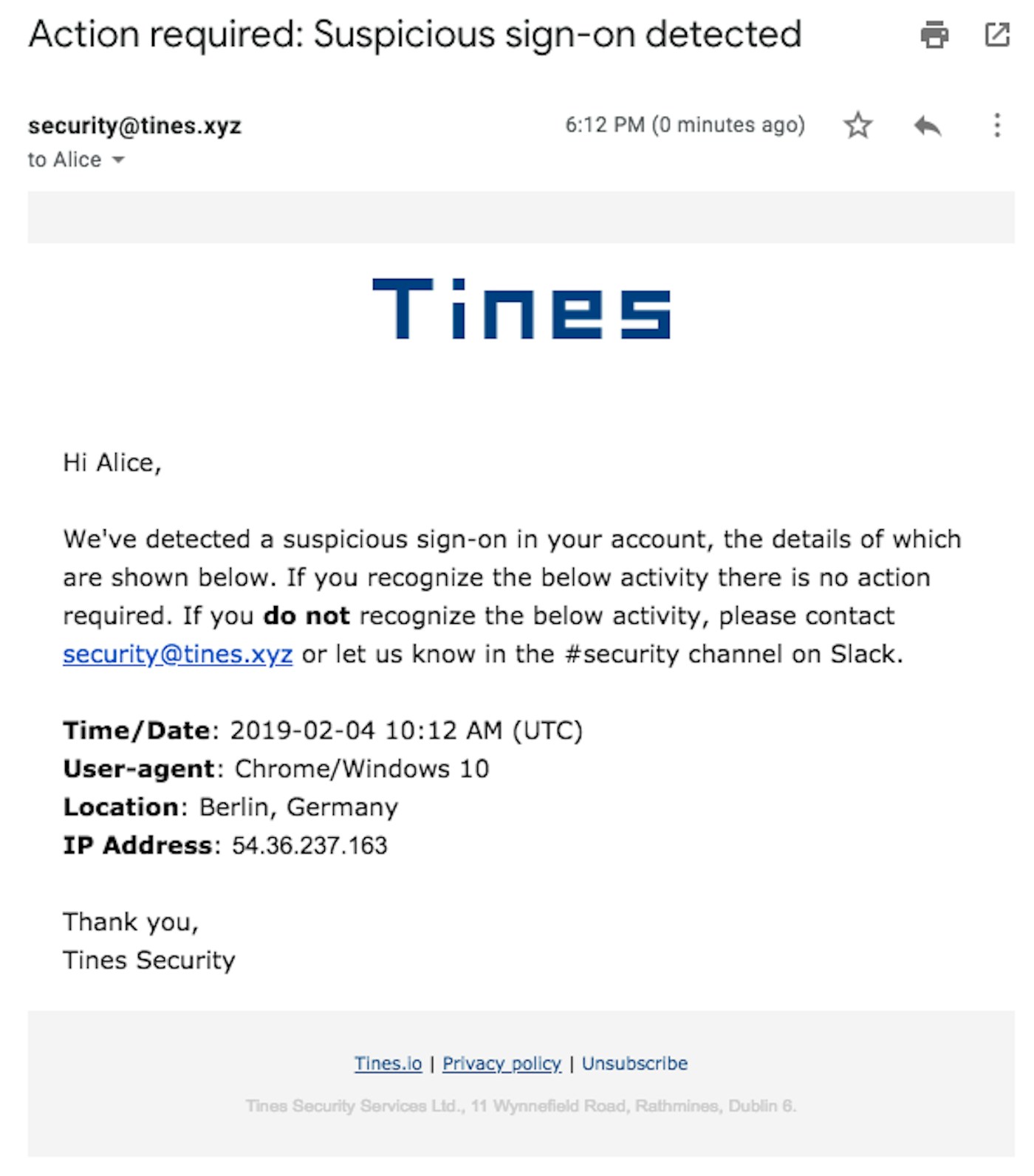 Reducing the meantime to action an alert is a key metric for any security team. Additional context helps analysts determine whether the incident is truly bad, a false positive, or something in between. For example, enriching suspicious login events with threat intelligence, researching when a domain was registered, running malware in a sandbox for additional analysis, or performing real-time analysis on a URL are all actions that can be automated with Security Automation platforms like Tines and included up-front in an incident ticket.