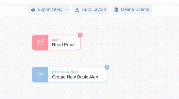 First, connect the IMAP Action to the HTTP Request Action.