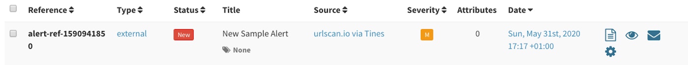 With the Action selected, click ‘Run’ at the top of the screen. This should run the Action in Tines and create an Alert in TheHive. Viewing your TheHive instance, you should see a new alert.