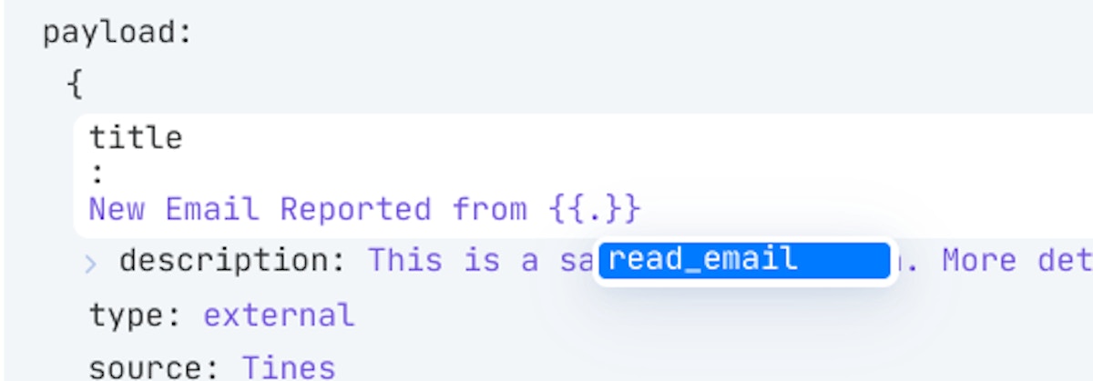 You should find when you place your cursor beside the `.` that Tines will suggest the data that could be used in this field.