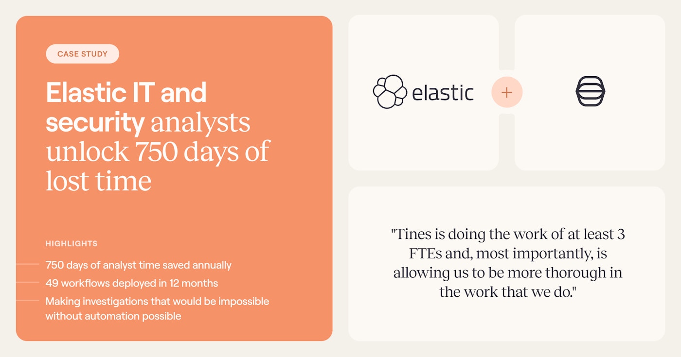 Elastic is the leading platform for search-powered solutions. The InfoSec team at Elastic deals with a high influx of alerts, noise, and false positives, but, until recently, they carried out little to no automation. Let’s look at what happened when they started using Tines to automate threat intelligence workflows.