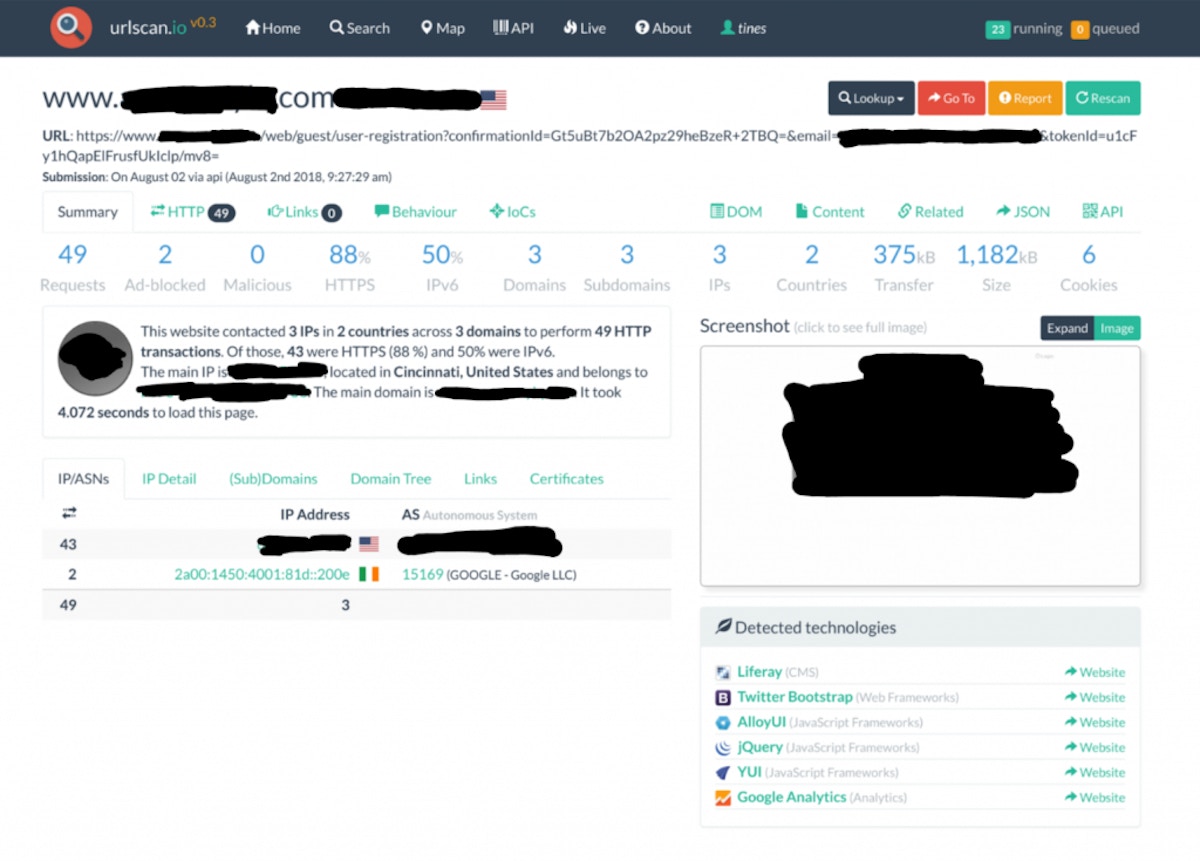 The problem of leaked data arises when a user submits a legitimate URL or file which leads to or contains, sensitive information, to a sandbox. By design, sandboxes record and make this sensitive information public. Additionally, as many public sandboxes provide APIs allowing programmatic submissions, sensitive information being “sandboxed” inadvertently by security teams is increased. For example, at Tines we regularly see security teams sandboxing every URL in every email that comes from an external source to an employee. This is fantastic from a threat detection perspective, but unless filtering and redaction occur before sandbox submission, it’s almost certain that sensitive content will also be sandboxed.