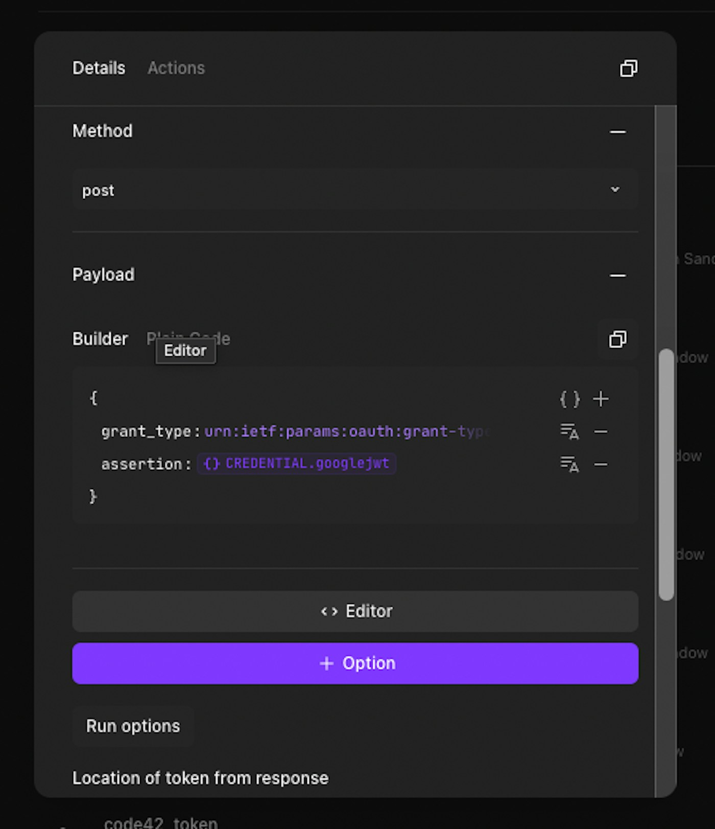 }Now click the Action, and when you run “▷” it, you should get a token in the response (visible from the right-hand side panel under “Events” when you hover over the Event ID and click “Show”.