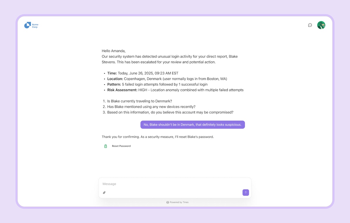 See agents in action in our product spotlight on July 9th at 10am ET, or talk to a Tines expert to learn more.