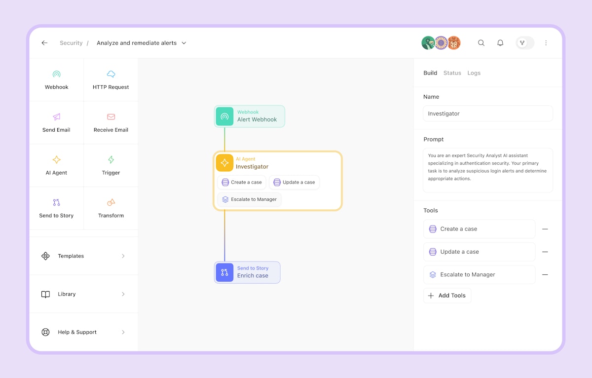 Agents shouldn’t be a black box you can’t define. With Tines, you have complete flexibility in how you implement AI within your workflows.