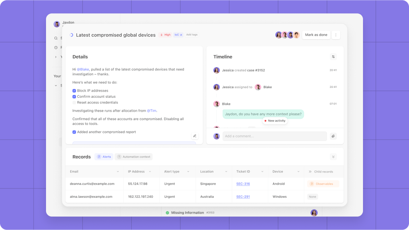 Cases is our solution for case management. Cases offer a space to collaborate on a workflow (or incident) with colleagues based on data captured from across your stories.