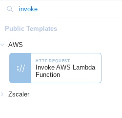 Pivoting in to Tines, the public template "Invoke AWS Lambda Function" can be pulled on to the Storyboard.