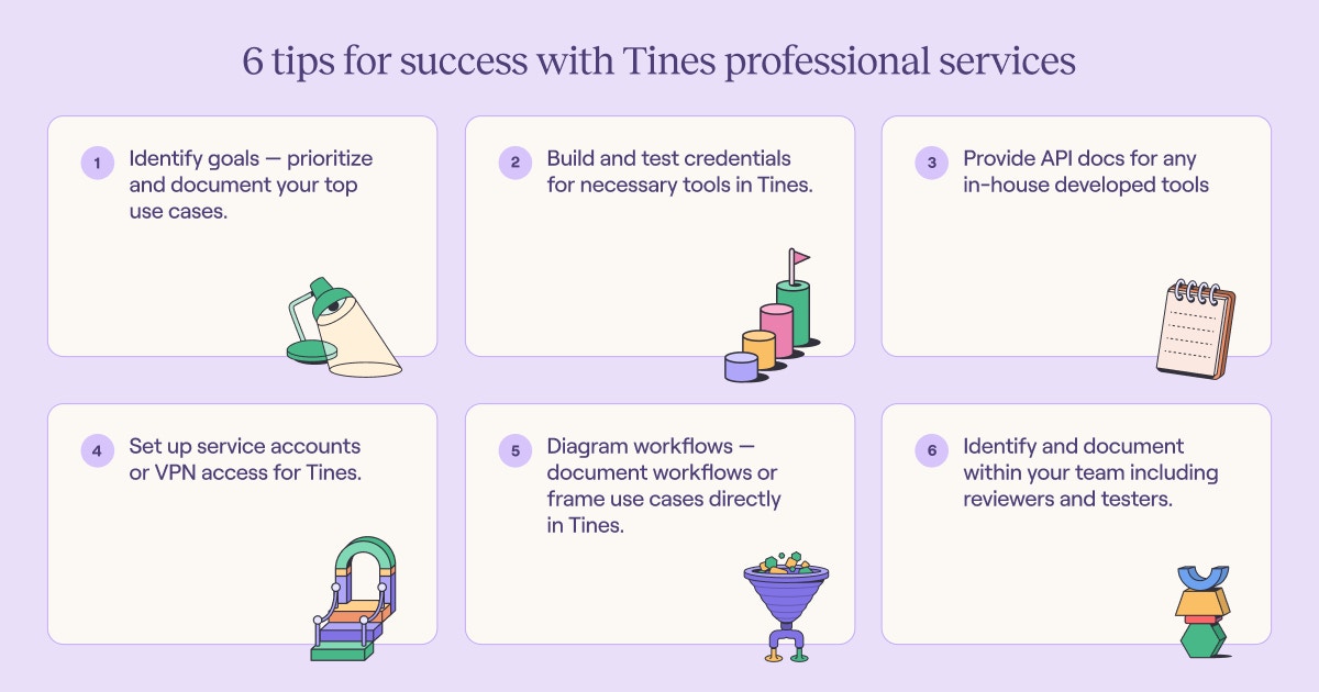 Tines is designed to be user-friendly so that any team can start building impactful workflows right away. However, there are a couple of reasons why some customers choose to engage professional services. For example, you’re working within a short migration timeline, you’re rushing to meet a deadline, or you’re focused on other tasks.
