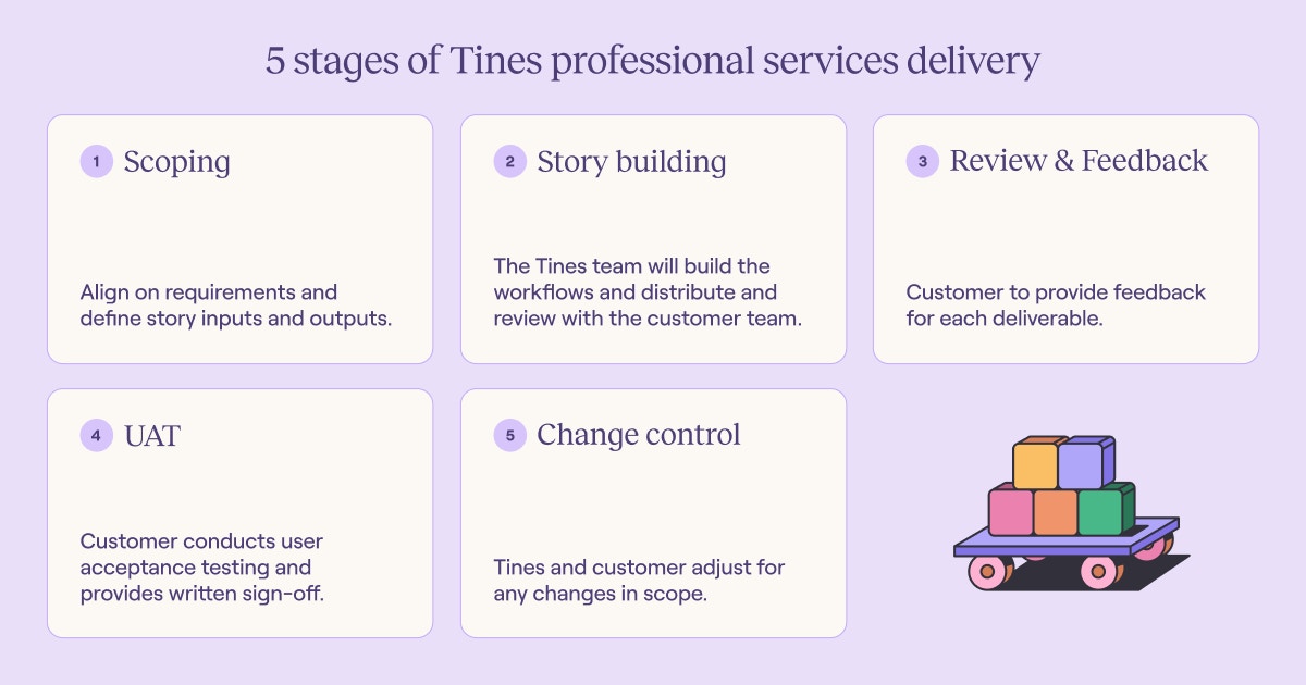 When it comes to investing in professional services, the quality of the experience can vary widely. While some customers might have exceptional experiences and others less so, most find themselves somewhere in the middle. However, every customer anticipates high-quality output and a robust delivery methodology. At Tines, we are committed to meeting these expectations in every engagement.