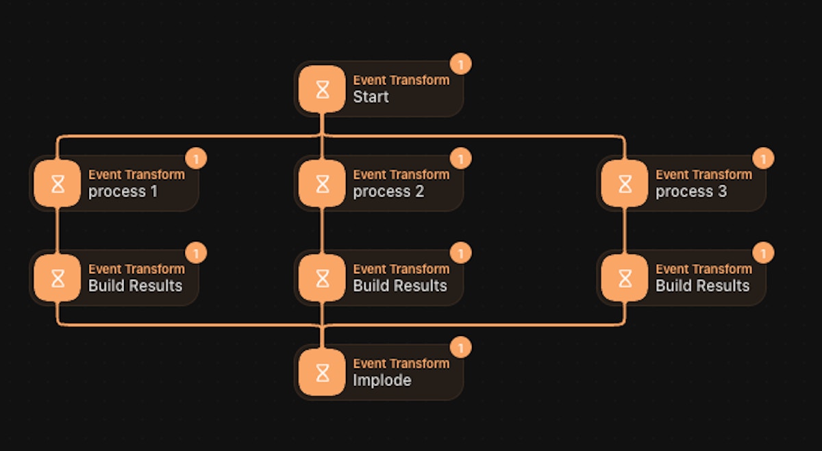 If building a story to allow for multiple processes to run in parallel, implode can be used as a counter to collect all the events generated from those separate processes. The trick is to add an event transform action after each process with the same name so each path is the same for the implode to catch and set the size of the implode to the number of branches (or processes).