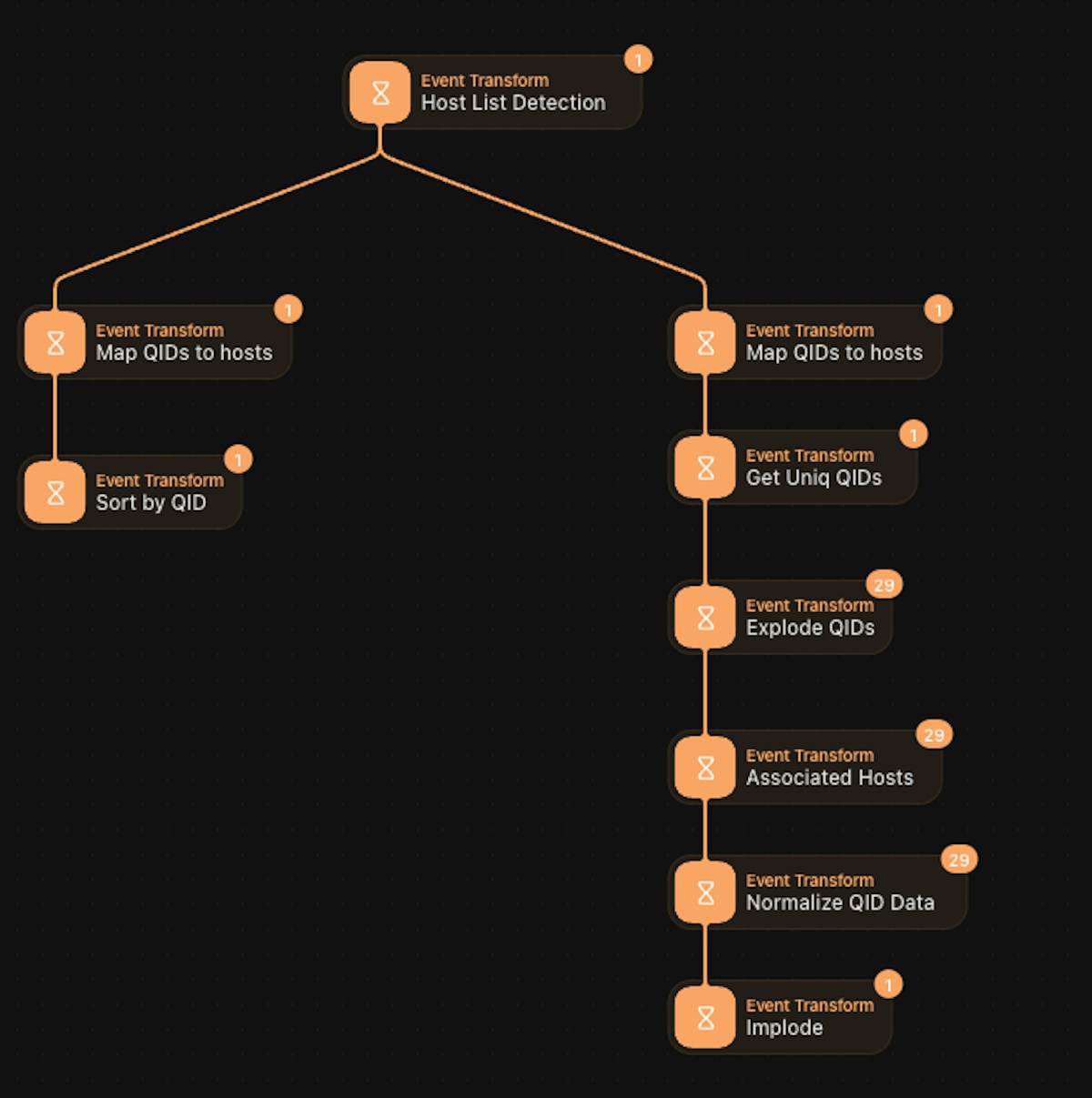 When it comes to deduplication, there are various methods to achieving this. Again, you can either use a combination of exploding the values followed by an Event Transform Action in “deduplicate” mode and time-based implode to bring the events back together. You could also leverage UNIQ() when looping through the values.