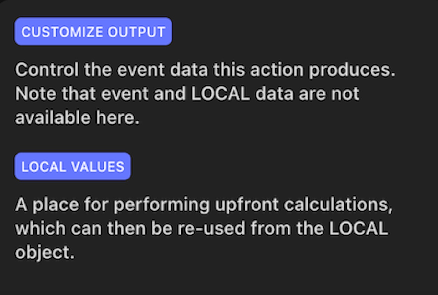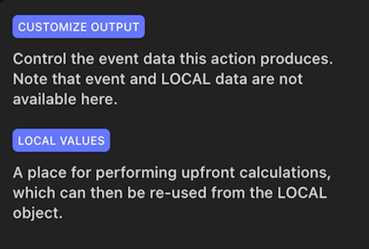 Nesting or combining functions within an action or leveraging local values can also cut down on total number of actions needed in a story. Local values are upfront calculations that can be referenced within the action using LOCAL. There's a trade-off between condensing the logic and the number of actions and the more readability and ability to understand a given story. We'll talk more about this in the next blog.