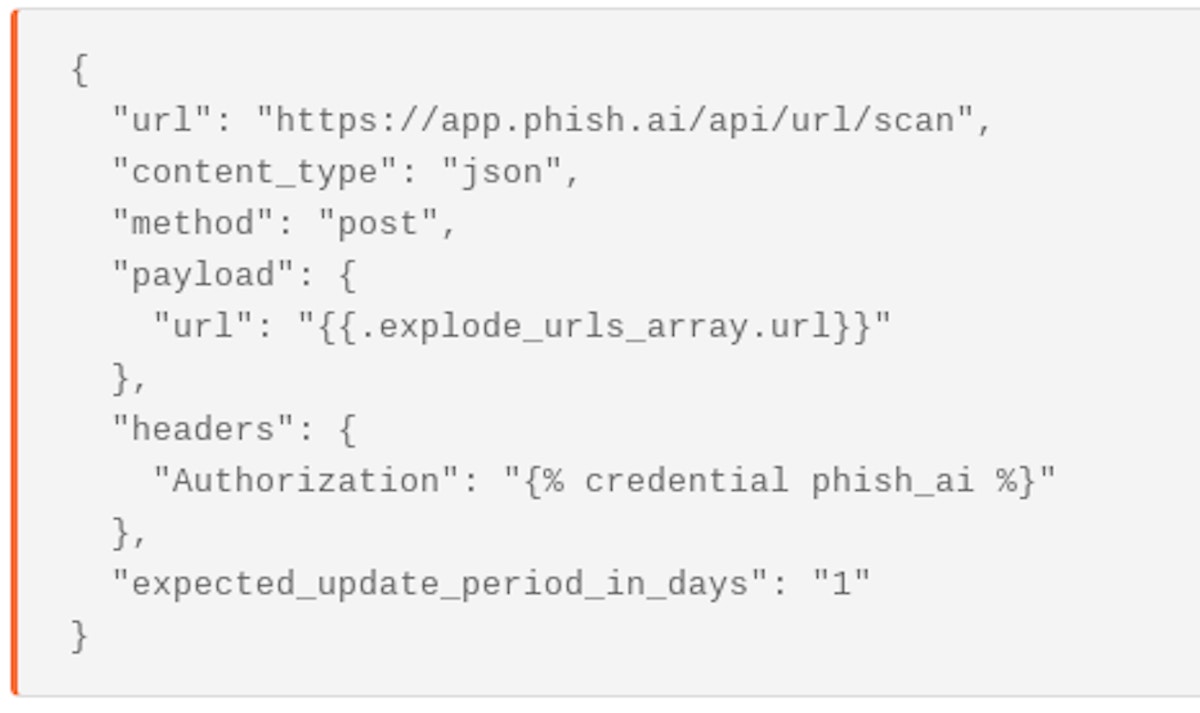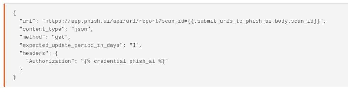 A HTTP Request Agent configuration to submit urls to phish.ai