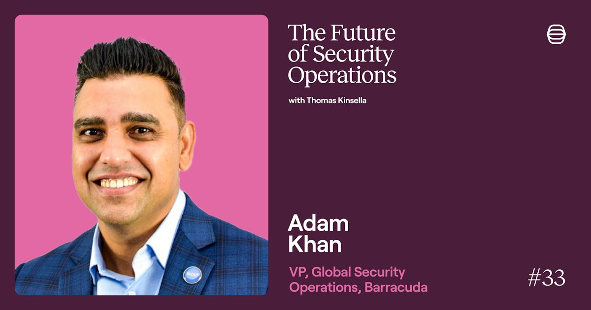 In this week’s episode of The Future of Security Operations podcast, I'm joined by Adam Khan. Adam is a cybersecurity and technology leader with over 25 years of experience working at Fortune 500 companies. He has a proven track record of building and managing global security teams, leading engineering, infrastructure, application, and product, and is currently VP of Global Security Operations at Barracuda.