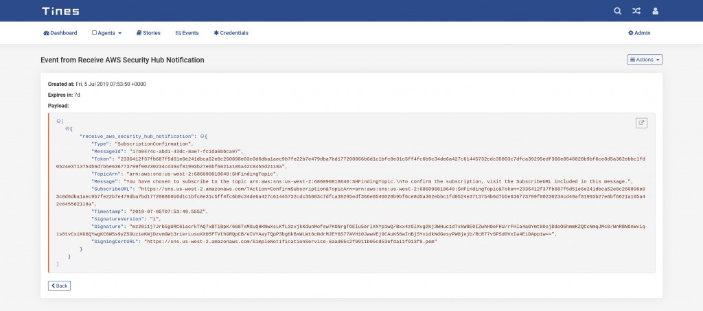 AWS Security Hub SNS Subscribe Confirmation event in Tines