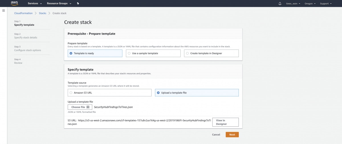 Next, you will need to configure AWS Security Hub to send CloudWatch Events to Tines. Although you can do this manually, we also provide a CloudFormation template that does the hard work for you.