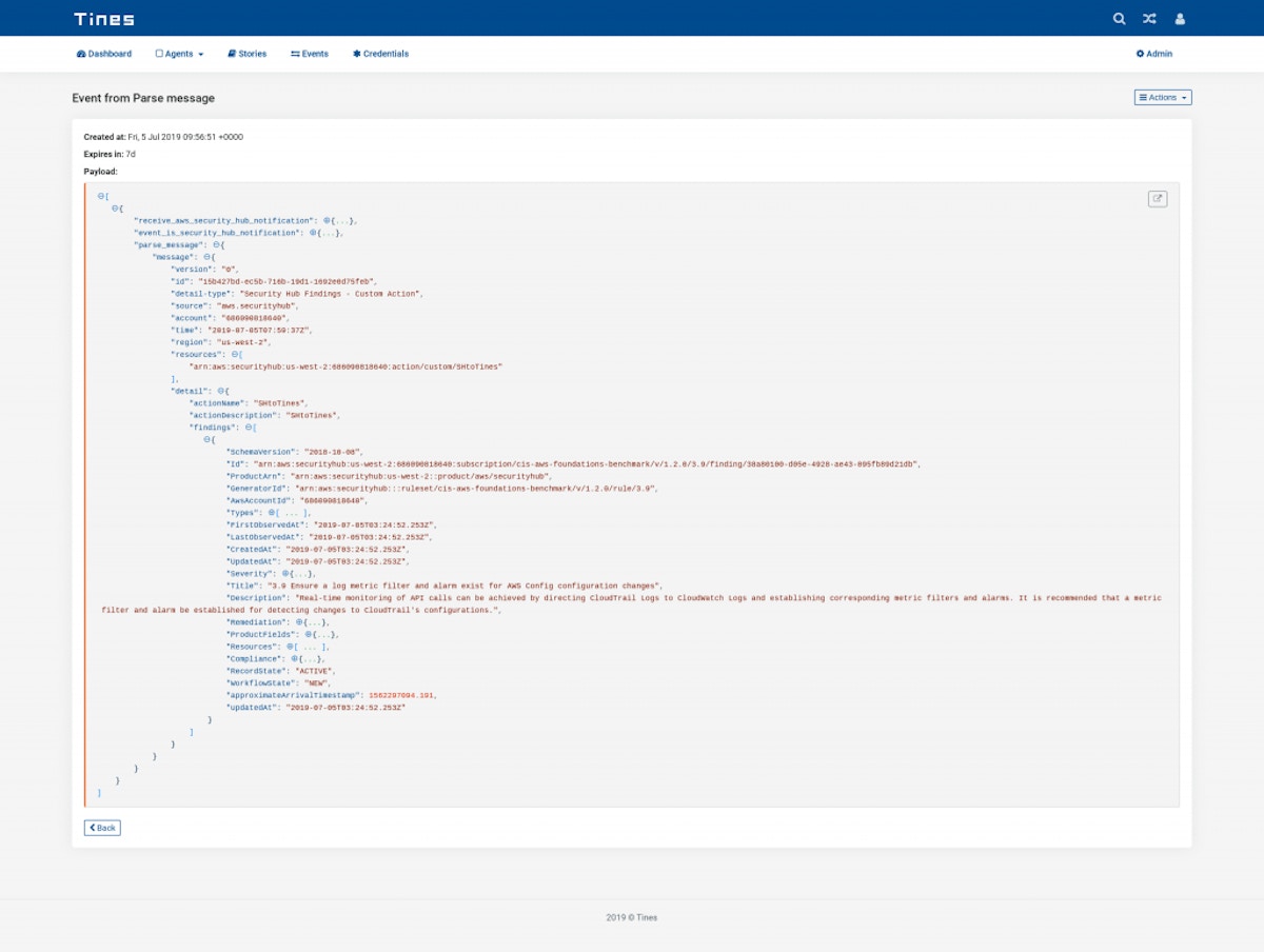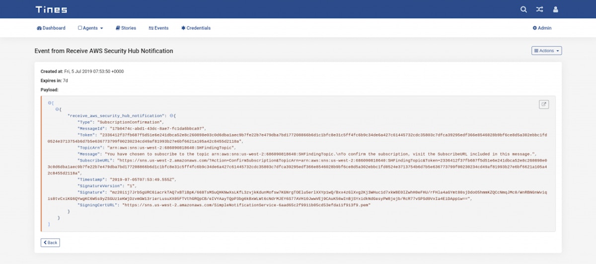 AWS Security Hub Notification event in Tines Security Automation Platform