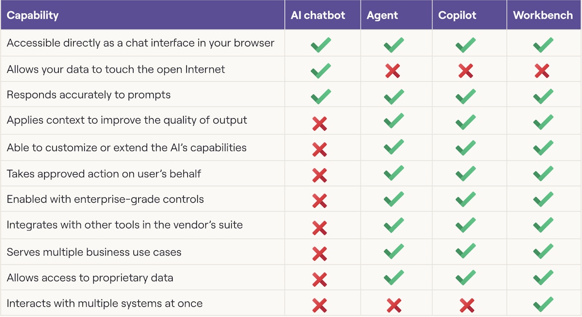 In this blog post, we’ll examine these AI tool types, consider their core functionalities and best use cases, and explore how Workbench compares to other tools in the market.