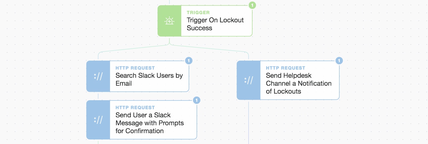 Let’s move on to informing the user that there’s been an issue and then get their confirmation they understand what’s happening. We only do this once we’ve confirmed the account lockout has been successful by using a simple trigger/check.